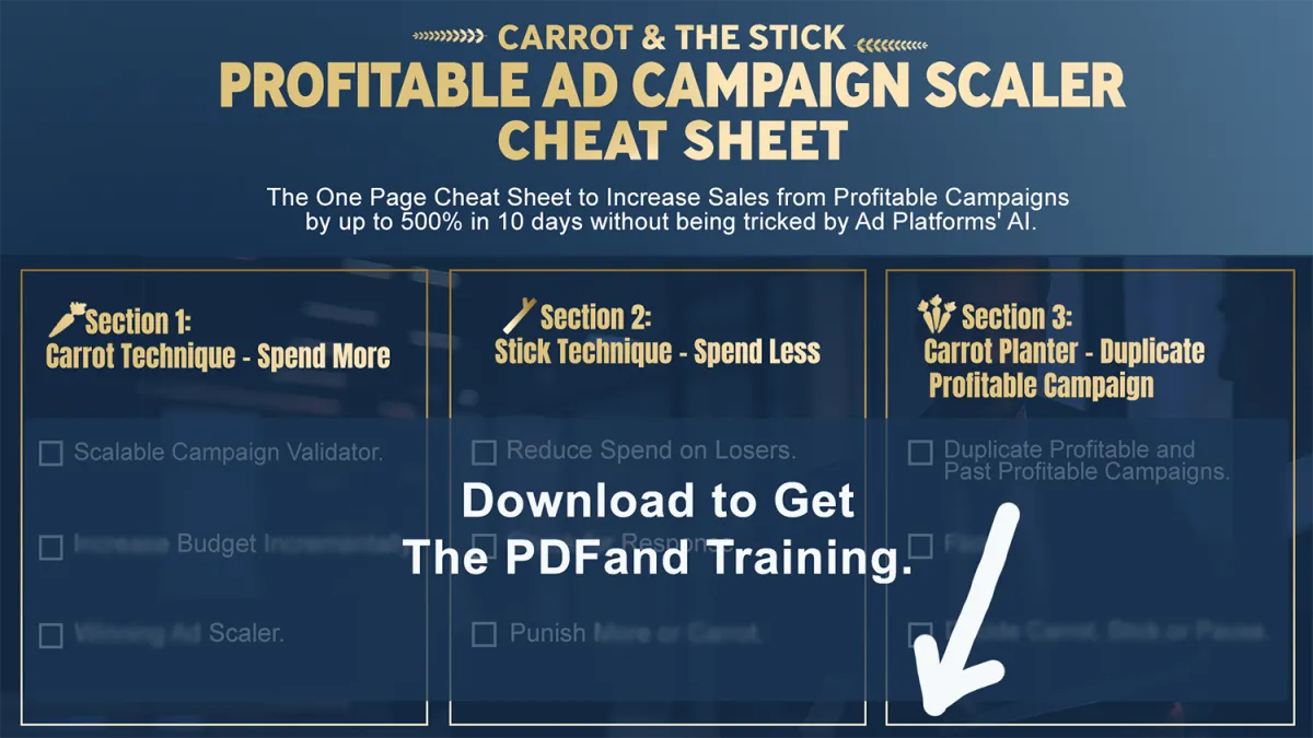 THE NEW CARROT & THE STICK PROFITABLE AD CAMPAIGN SCALER CHEAT SHEET FOR BUSINESS OWNERS, PRESIDENTS AND CEOS…